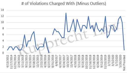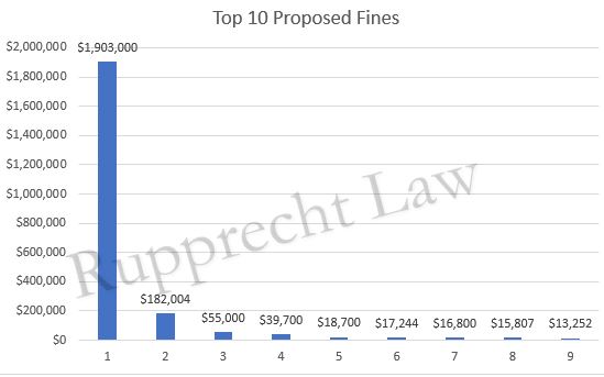 You might also want to know the typical count of charges per proposed penalty. I eliminated the large outliers (e.g. SkyPan).