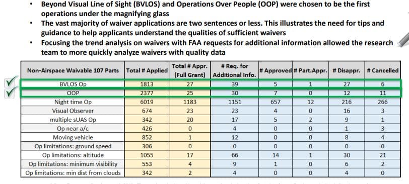 Waiver passage rates are historically very very bad. Here is a slide from one of the FAA presentations from the 2019 FAA UAS Symposium.